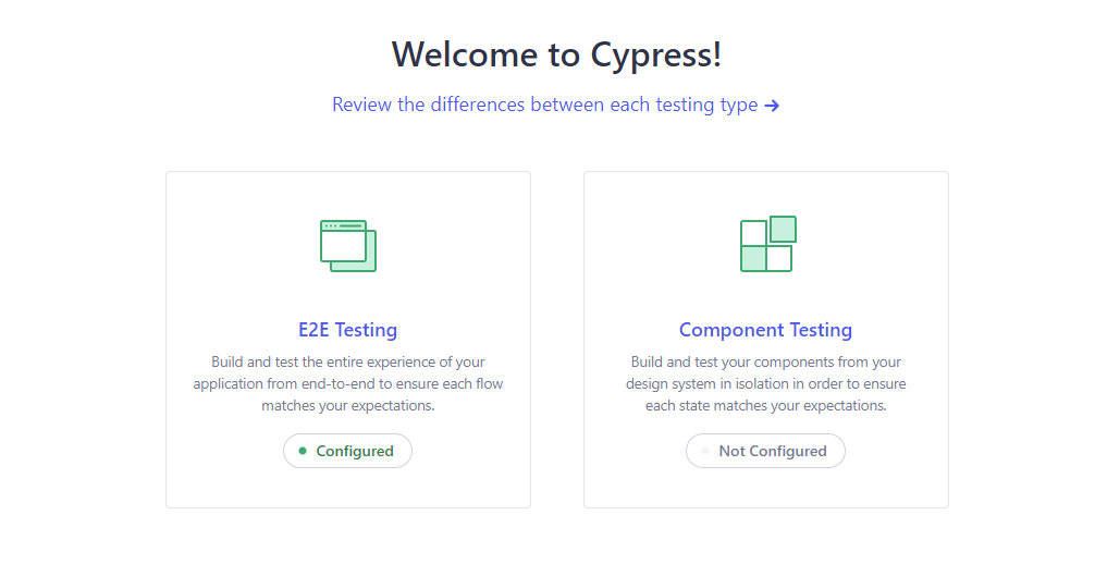 Choose E2E Testing by clicking on the tile.