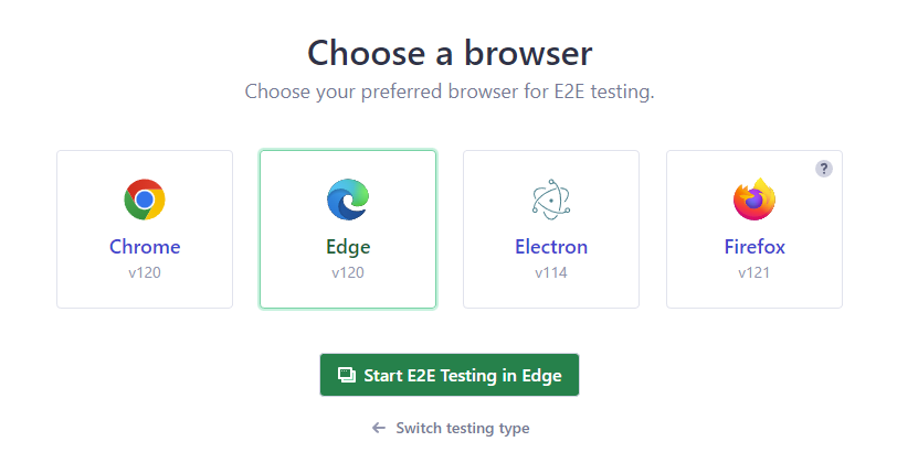 <figure><img src="https://3933488479-files.gitbook.io/~/files/v0/b/gitbook-x-prod.appspot.com/o/spaces%2FjpWd52BKwABWxF2lScUK%2Fuploads%2Fgit-blob-a2eabce5cd78a1cf93cb55626f64d39c879f9f7c%2Fcy-select-browser.png?alt=media" alt=""><figcaption><p>Browser selection for E2E testing</p></figcaption></figure>