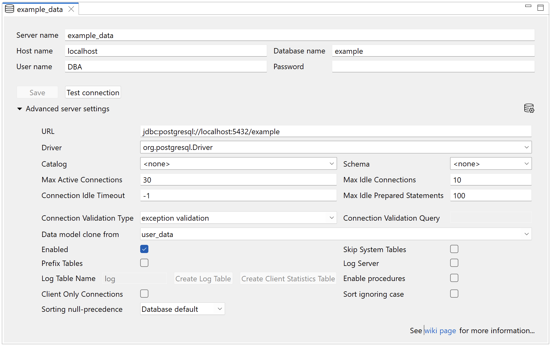 * **Server name:** A unique identifier for the database server connection within Servoy. This name is used in data bindings and scripts to reference this particular connection.