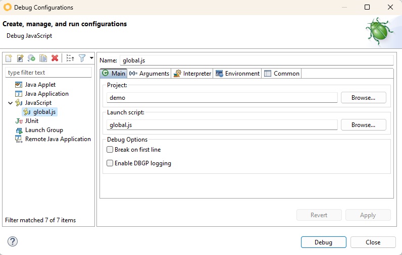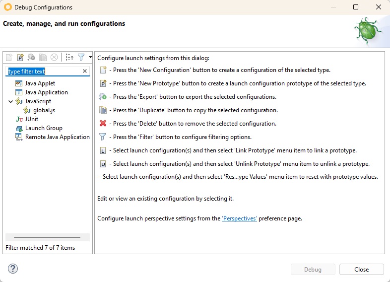 ## Using the Debug Configurations