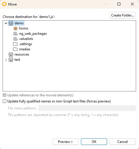 1. Open the Move Wizard: Access it from the Servoy Developer [Refactor](https://docs.servoy.com/reference/menu/refactor#move) menu or through the right-click context menu in the script editor.