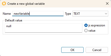 * **OK** : Click this button to create the variable with the specified name, type, and default value.